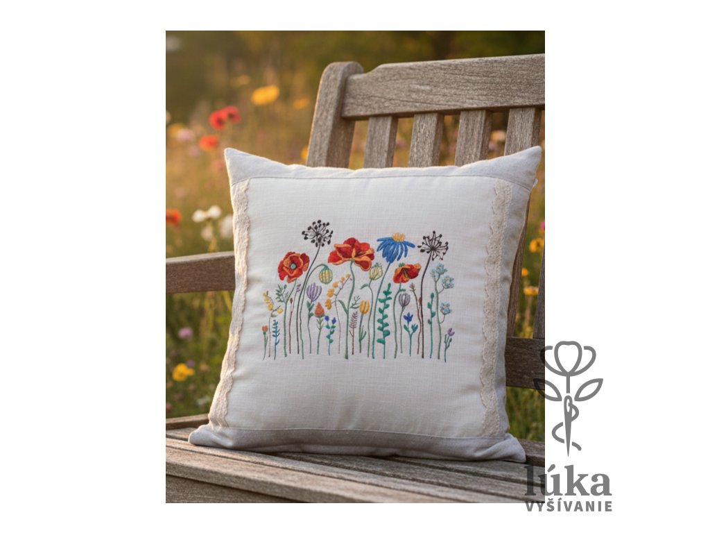 S týmto vankúšom sa u vás doma usadí čaro letnej lúky. Detailná výšivka farebných poľných kvetov na kvalitnom vankúši s jemnou čipkou vytvorí útulnú atmosféru v každom interiéri. Dokonalý detail pre milovníkov prírody.