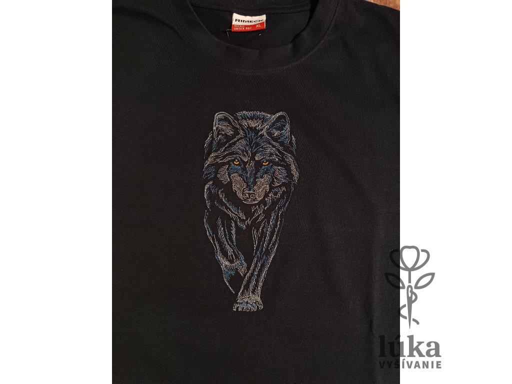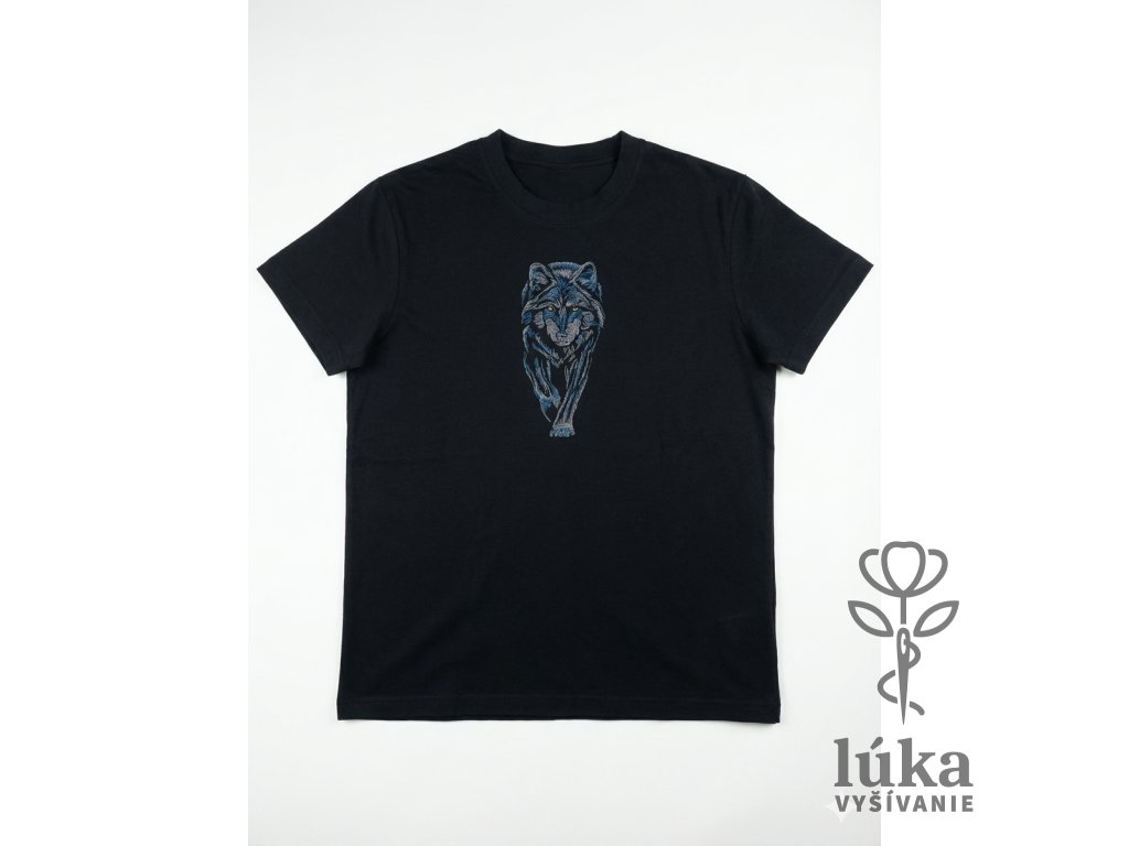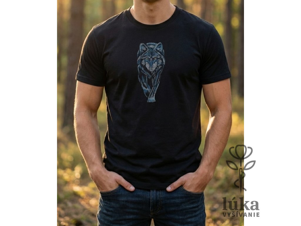 Obleč si silu divočiny. Detailná, umelecká výšivka kráčajúceho vlka s prenikavými očami na kvalitnom tmavom tričku. Prémiový kúsok pre milovníkov prírody a originálneho štýlu.